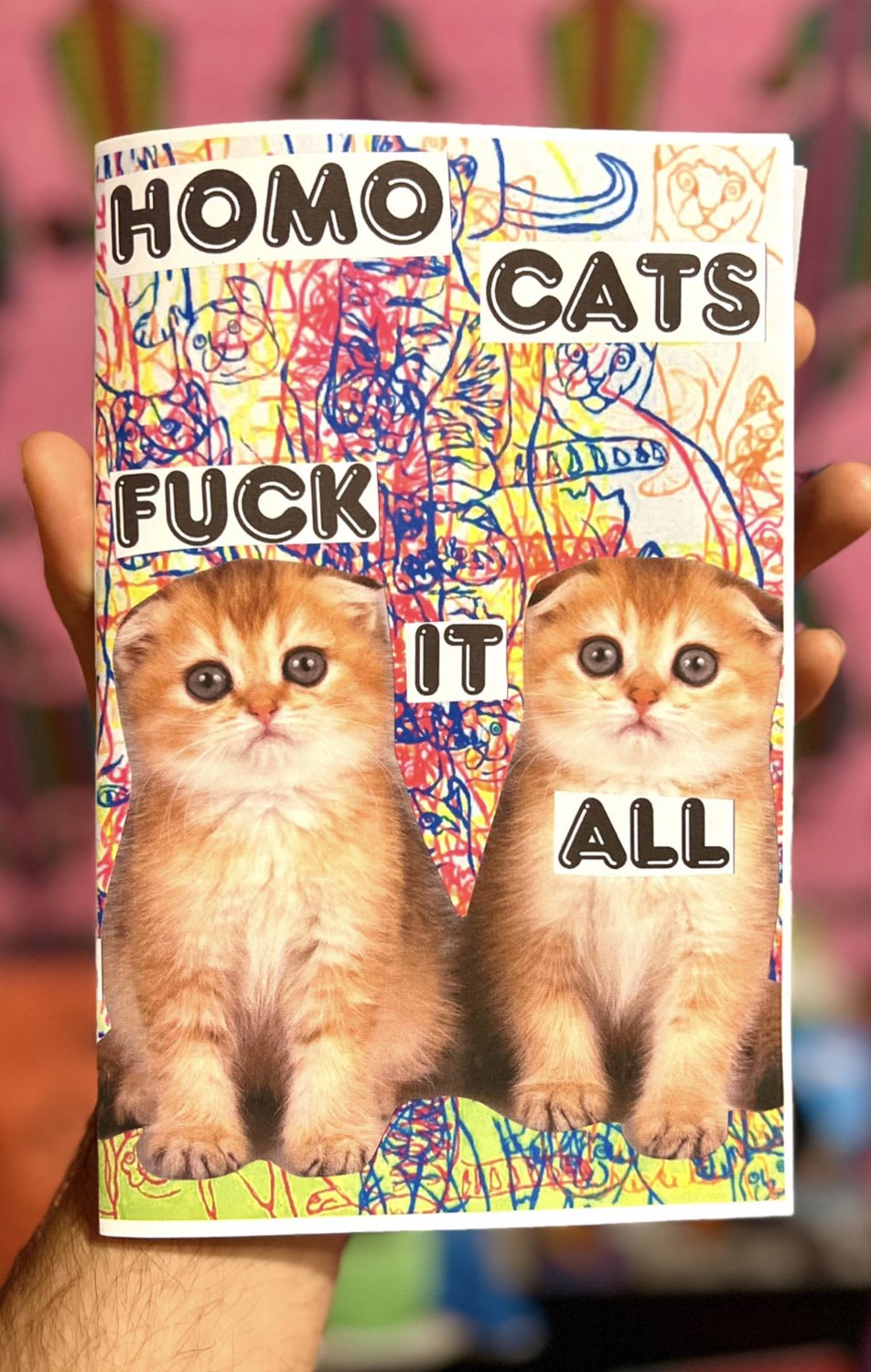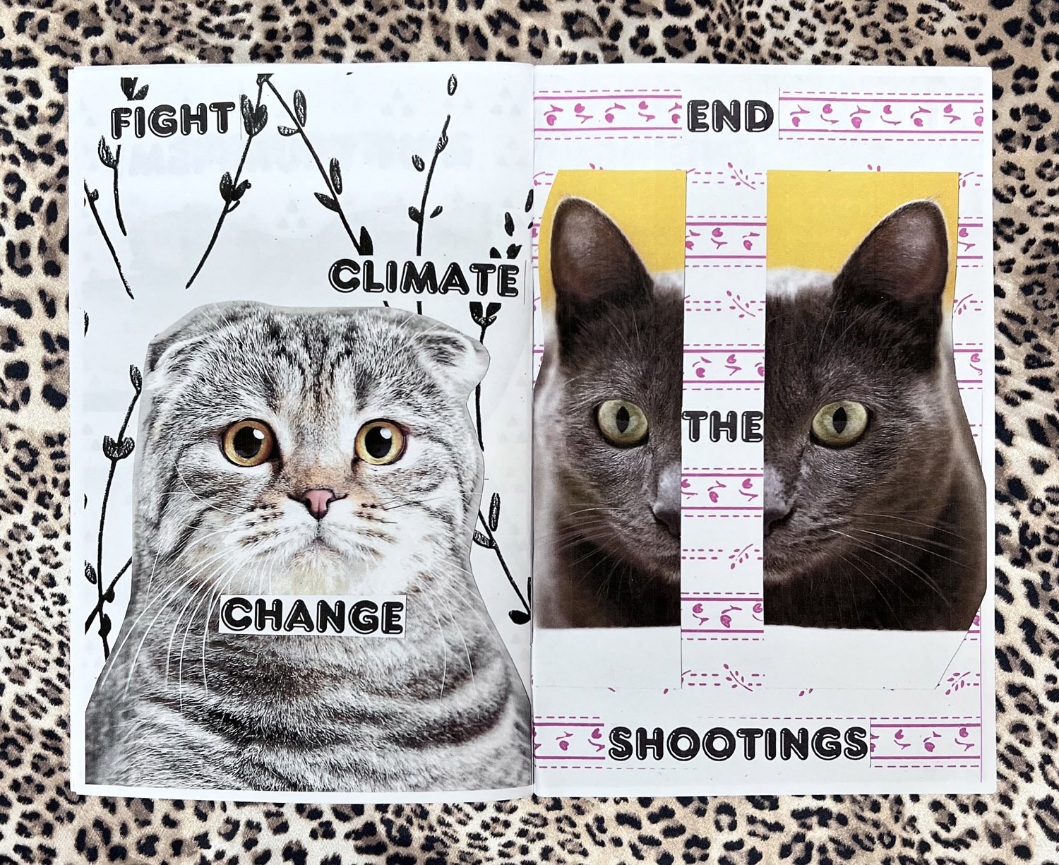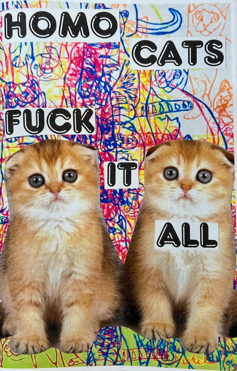 the newest zine in the series, continues the HOMOCATS journey for social activism by commenting on queer politics, abortion rights, climate change, and gun control.